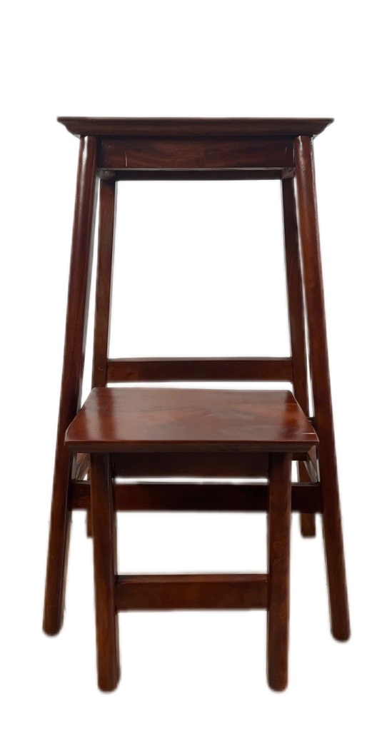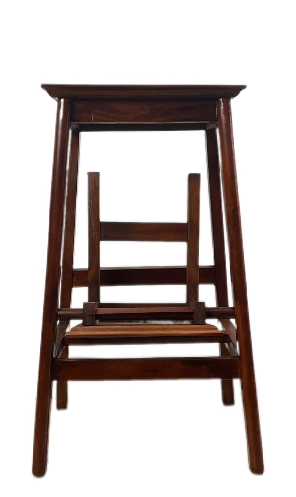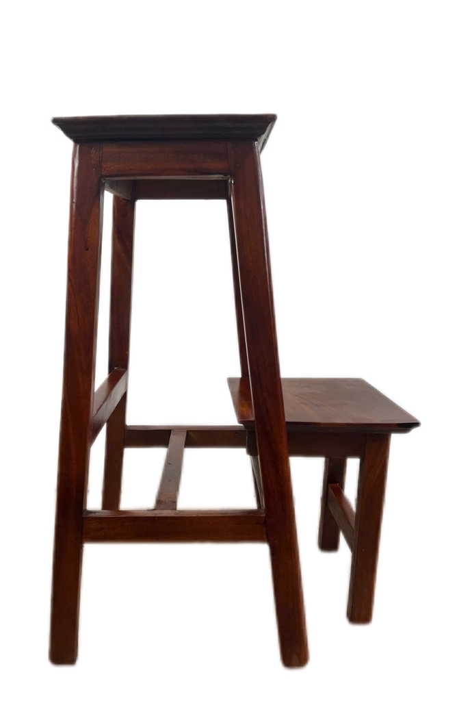 Chiếc ghế làm từ gỗ gụ tự nhiên, có màu nâu trầm, đường vân gỗ rõ. Kết cấu ghế chắc chắn, thiết kế đơn giản, phù hợp sử dụng trong gia đình, quán cà phê hoặc văn phòng.