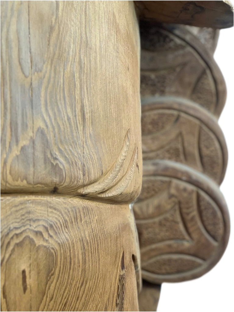 Tượng được làm từ gỗ ngọc am, màu gỗ sáng, có mùi thơm tự nhiên. Hình tượng Di Lặc Vạn Sự Như Ý được thể hiện với khuôn mặt tươi cười, tay cầm gậy như ý tượng trưng cho quyền lực và sự hanh thông, tay kia giữ bao tiền biểu trưng cho tài lộc. Trang phục và các chi tiết xung quanh được chạm khắc tỉ mỉ, tạo cảm giác cân đối và hài hòa. Trong phong thủy, hình ảnh Di Lặc mang ý nghĩa lạc quan, vui vẻ; kết hợp với gậy như ý và bao tiền thể hiện lời chúc mọi việc thuận lợi, đủ đầy và viên mãn.