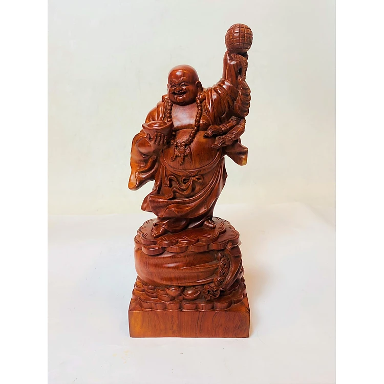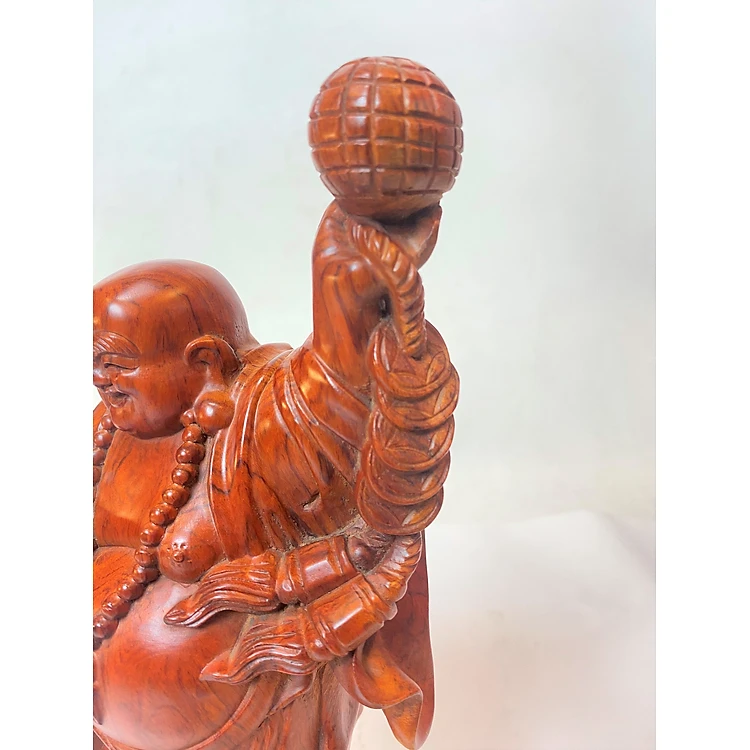 Hình tượng Phật Di Lặc đứng an nhiên, tự tại; trên tay trái ngài nâng bổng khối cầu tựa như mang lại bình sự bình an, hoan hỷ cho toàn cõi chúng sinh.